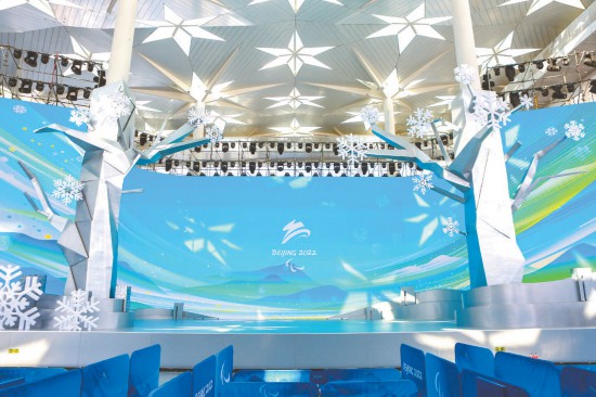 延慶冬殘奧頒獎廣場“雪晶宮”光彩奪目。