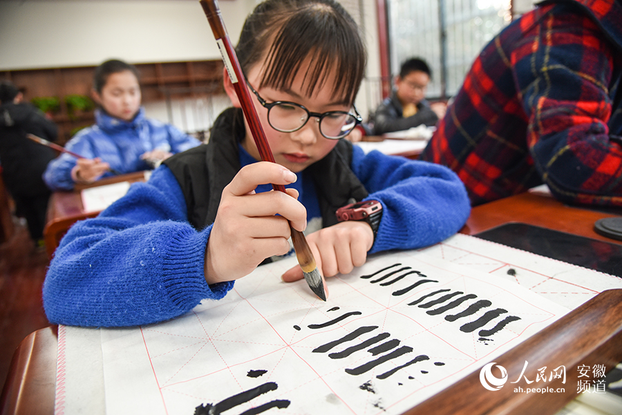 “小小書法家”正在認真練習(xí)書寫。人民網(wǎng) 李希蒙攝