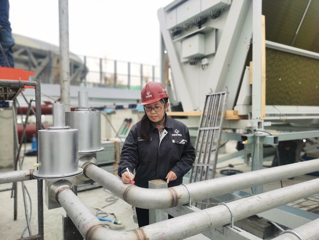 為確保12萬(wàn)米不銹鋼管道每條焊縫嚴(yán)絲合縫,李燕敏要求項(xiàng)目團(tuán)隊(duì)嚴(yán)格根據(jù)第三方出具的三維掃描結(jié)果對(duì)制冰排管進(jìn)行定位糾偏,確保管道位置偏差控制在5毫米以?xún)?nèi)。這些扎實(shí)的工作,為制作“最快的冰”筑牢堅(jiān)實(shí)基礎(chǔ)。