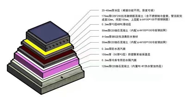 混凝土冰板層這道工序尤為重要,施工也最為艱苦。對(duì)李燕敏來(lái)說(shuō),冰板構(gòu)造施工就如同制作“千層糕”:從下向上鋪設(shè)加熱層、防潮隔汽層、保溫層、隔離層、防水層、混凝土冰板層……55厘米厚的混凝土整整有9層,整個(gè)地面平整度要達(dá)到設(shè)計(jì)要求的精度,每個(gè)環(huán)節(jié)不容有絲毫閃失。