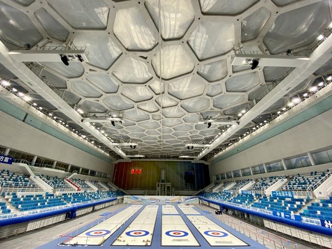 同樣遵循“‘簡’法”理念,北京賽區(qū)大部分場館,都是在現(xiàn)有場館基礎(chǔ)上改造而成,如“冰立方”就是“水立方”創(chuàng)造性變身而來。國家游泳中心冰壺賽場(冰立方)設(shè)計總負責人鄭方與“水立方”同事一起組建科研團隊,采用鋼框架結(jié)構(gòu)+預制砼板作為場地基層,“水立方”實現(xiàn)“水冰轉(zhuǎn)換”,中國方案獲得成功。