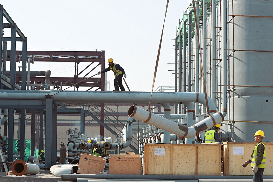 呂梁市圍繞氫能“制、儲、運、研、應(yīng)用”加快構(gòu)建全產(chǎn)業(yè)鏈集群發(fā)展格局,強力推進“一體兩翼、三港四鏈”氫能發(fā)展戰(zhàn)略,呂梁市氫能產(chǎn)業(yè)呈現(xiàn)動能加速集聚態(tài)勢。圖為3月16日,鵬灣氫港氫能產(chǎn)業(yè)園施工現(xiàn)場。(劉亮亮攝)