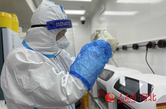 “在華大技術(shù)人員的協(xié)助下,來自河北各地支援的醫(yī)務(wù)人員已完成對(duì)生物安全知識(shí)、儀器設(shè)備使用注意事項(xiàng)等方面的工作梳理和培訓(xùn)。實(shí)驗(yàn)人員在輪班的情況下,保證實(shí)驗(yàn)室能夠24小時(shí)運(yùn)轉(zhuǎn)以達(dá)到相應(yīng)的日檢測(cè)通量?!蓖踉品颊f。(林福盛、吳源生)