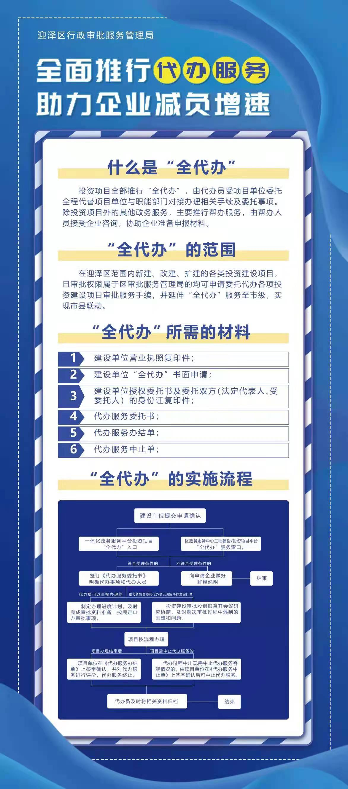據(jù)介紹,針對(duì)項(xiàng)目審批手續(xù)多、時(shí)限長等問題,太原市迎澤區(qū)行政審批局梳理堵點(diǎn)痛點(diǎn),實(shí)施流程再造,開展了投資項(xiàng)目建設(shè)“全代辦”服務(wù),按照“合法高效、自愿委托、無償服務(wù)、全程跟蹤、協(xié)同聯(lián)動(dòng)”的原則,為企業(yè)提供委托項(xiàng)目一部門辦、一窗入件、一人代跑、一律免費(fèi)的“全代辦”服務(wù)。