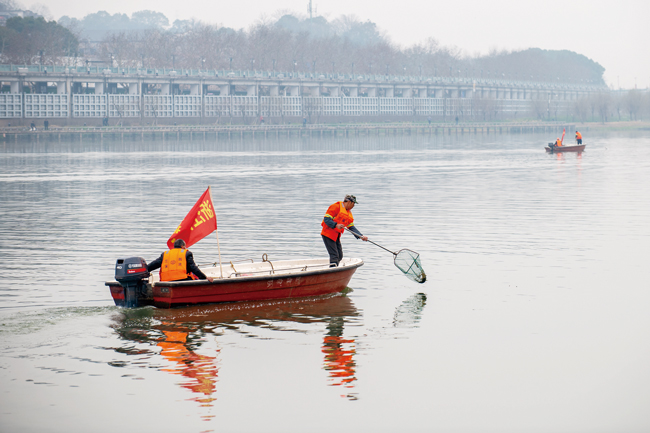 3月22日,金華蘭溪市蘭江江面上,護(hù)水人員駕駛打撈船巡河,及時(shí)清理漂浮物。當(dāng)天是第三十屆“世界水日”。近年來(lái),蘭溪市護(hù)水人員每天在水面上巡邏,發(fā)現(xiàn)垃圾和漂浮物及時(shí)清理,確保江水干凈。(胡肖飛)