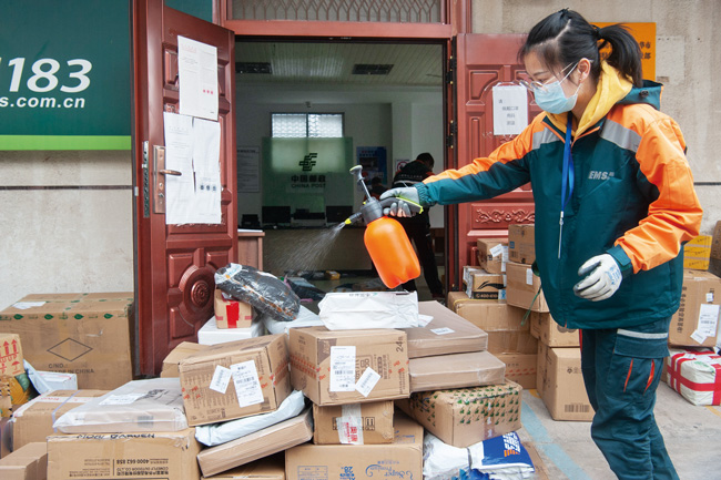 3月20日,在金華一快遞公司人民東路特快專遞攬投部,員工給快件和派送車輛噴灑藥水進(jìn)行消殺。據(jù)了解,為做好新冠疫情防控工作,運(yùn)載快件的大型車輛到達(dá)后,卸貨前先要對(duì)車輛消殺,再給快件消殺;快遞員每次出車派送返回?cái)埻恫?,都要按要求給車輛消殺。工作場(chǎng)地每天早、中、晚消殺3次,記錄在工作臺(tái)賬上。(時(shí)寬兵)