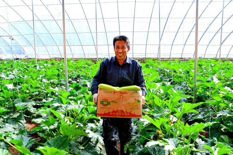 掀開大棚門簾,熱氣撲面而來。眼前,一壟壟西葫蘆藤蔓郁郁蔥蔥,金黃色花朵上結(jié)出一個個西葫蘆,瓜條順直、鮮嫩翠綠。大棚負責人任國喜樂呵呵地說:“這里建成后一刻也沒閑置,及時種上西葫蘆、西紅柿。眼下第一批西葫蘆已經(jīng)上市,價格不錯。等到生長旺季,畝產(chǎn)5000斤不成問題?!?/p>