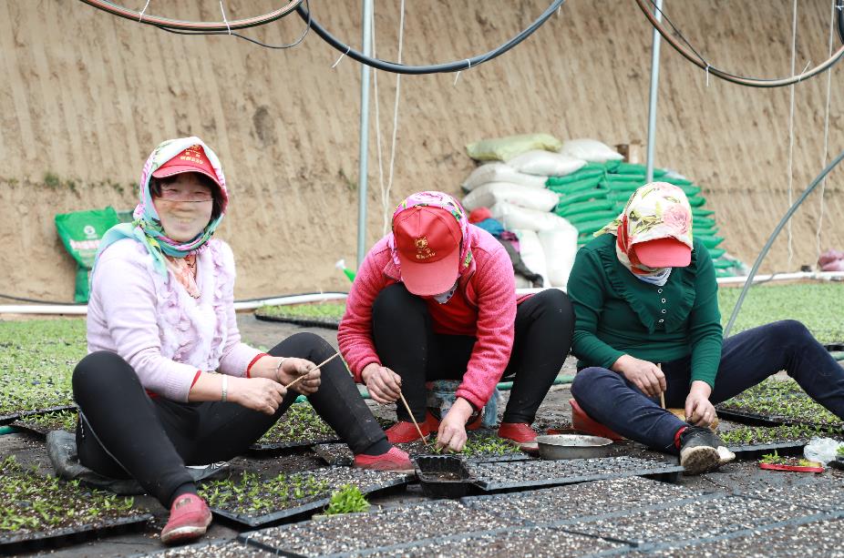 “這是剛長成的辣椒苗,我們抓緊時間把它們移植到育苗盤里,一坑兒一苗兒?!闭谑炀氉龉さ?6歲村民薛愛說,“節(jié)令不等人,從3月初開始張羅營養(yǎng)土配比,然后播種、澆水、移植和管護(hù),到5月中旬進(jìn)入銷售高峰,我們就一直在這里忙?!?/p>