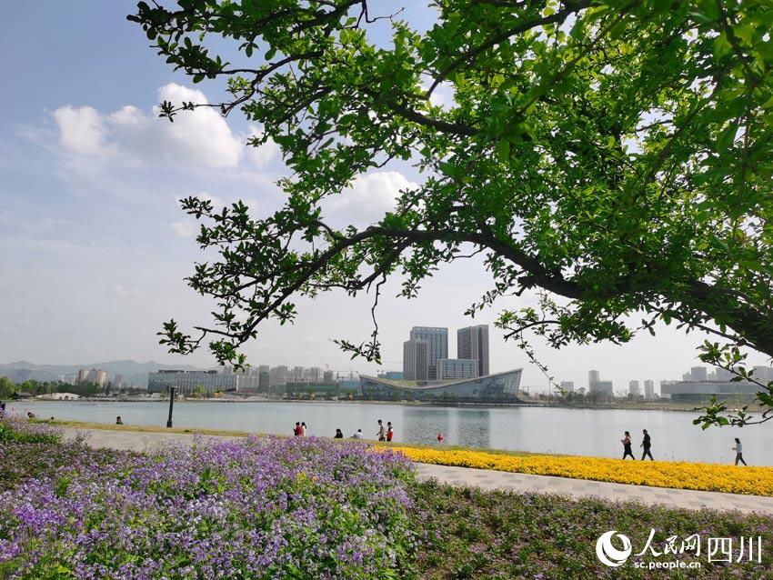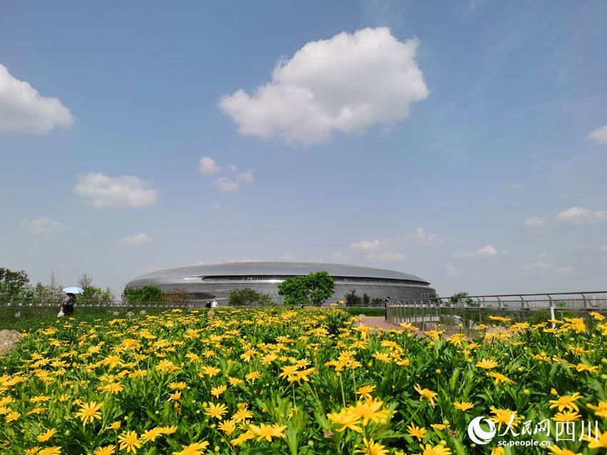 龍泉山脈綿亙遠(yuǎn)方,東安湖水蕩漾眼底,體育場(chǎng)館巍峨半空,花草樹(shù)木各展春姿。在湖光山色之間,有大量市民前來(lái)踏青賞春,順便欣賞著大運(yùn)會(huì)場(chǎng)館和火炬塔的風(fēng)采。