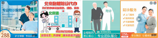 圖為淘寶、京東等電商平臺(tái)提供陪診服務(wù)的店家截圖。