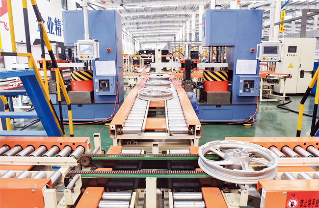 3月30日,在位于金華婺城區(qū)摩輪未來工廠生產(chǎn)車間里,智能生產(chǎn)線正在平穩(wěn)運(yùn)行,全自動(dòng)完成設(shè)定的輪轂加工工序。該工廠被金華市和婺城區(qū)列為數(shù)字化示范企業(yè)。企業(yè)運(yùn)用5G、視覺識(shí)別等新一代信息技術(shù),大量應(yīng)用工業(yè)機(jī)器人,實(shí)現(xiàn)柔性化生產(chǎn),建成裝備數(shù)字化、工藝數(shù)字化、運(yùn)營數(shù)字化的數(shù)字化工廠。用工人數(shù)比傳統(tǒng)項(xiàng)目減少58%,生產(chǎn)效率提升15%。(陳俊、李建林)