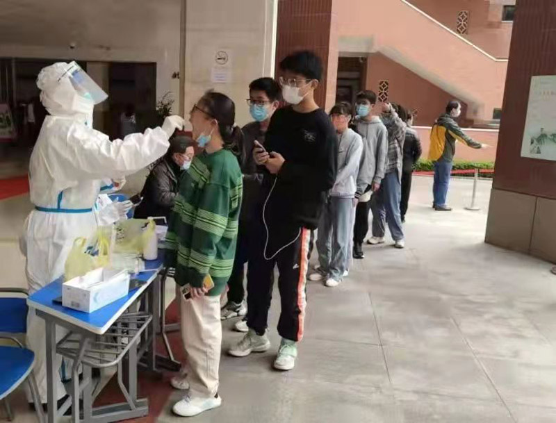 由于學(xué)校實(shí)行準(zhǔn)封閉管理,西藏學(xué)生長期住校。面對(duì)嚴(yán)峻的疫情防控形勢,及時(shí)安全的核酸檢測成為保障學(xué)生安全的頭等大事。上海市第一人民醫(yī)院得知學(xué)校希望醫(yī)務(wù)人員能進(jìn)校園對(duì)住校師生員工進(jìn)行核酸檢測的要求后,克服任務(wù)重、人手緊的困難,每周抽調(diào)醫(yī)護(hù)人員志愿到學(xué)校,解決核酸檢測的實(shí)際困難,為西藏班學(xué)生送去關(guān)心和溫暖。(龍鋼)