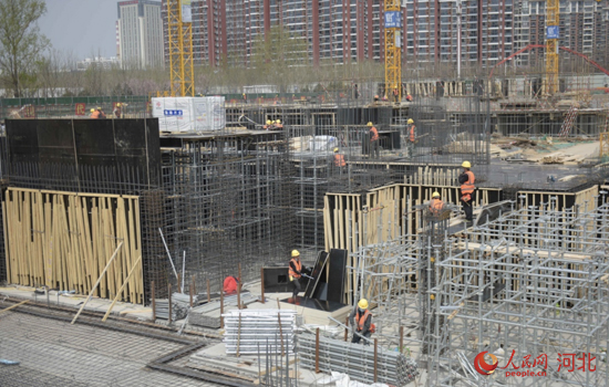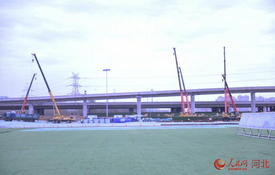 走進(jìn)石家莊高鐵商務(wù)區(qū)施工現(xiàn)場,挖掘機正在施工,重型卡車來回穿梭,工地上一派繁忙。干凈整潔的甬道、出具規(guī)模的網(wǎng)球場、籃球場,滿眼綠樹紅花。而在去年8月之前,這里還是低矮破舊,私搭亂建、基礎(chǔ)設(shè)施老化的舊市場。僅僅過了半年,高鐵商務(wù)區(qū)中央綠色體育公園初具規(guī)模,石家莊的“城市客廳”雛形已現(xiàn)。
