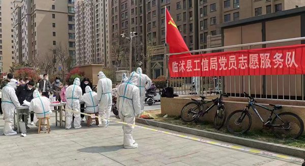 3月31日臨沭縣發(fā)現(xiàn)無癥狀感染者病例后,縣工信局聞令而動,迅速組織人員集結奔赴幫包網(wǎng)格小區(qū),當日協(xié)助開展全員核酸檢測3550余人次,隨后又完成封控區(qū)上門核酸檢測、執(zhí)勤區(qū)域搭建、特殊群體人員排查、夜間值守等工作。 同時招募社區(qū)志愿者協(xié)助封控區(qū)居民每日運送生活物資、生活垃圾1000余份。在與疫情戰(zhàn)斗的十多天中,圓滿完成幫包小區(qū)管控區(qū)全員核酸檢測2.45萬人次,封控區(qū)全員核酸檢測3541人次,出入口24小時值守等各項工作任務,筑牢疫情防控“銅墻鐵壁”。