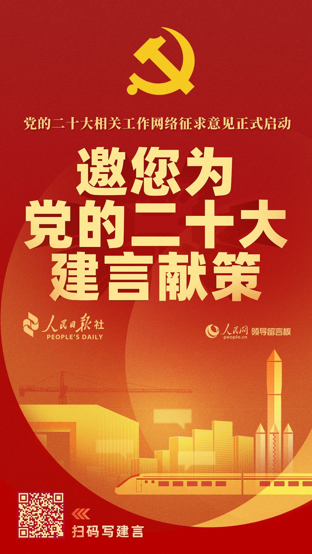 黨的十九屆六中全會(huì)決定,黨的二十大于2022年下半年在北京召開(kāi)。開(kāi)展黨的二十大相關(guān)工作網(wǎng)絡(luò)征求意見(jiàn),充分彰顯了以習(xí)近平同志為核心的黨中央發(fā)揚(yáng)民主、集思廣益的優(yōu)良作風(fēng),是我們黨堅(jiān)持以人民為中心、尊重人民主體地位、走好群眾路線的重要體現(xiàn),是發(fā)揮中國(guó)特色社會(huì)主義制度優(yōu)勢(shì)、推進(jìn)全過(guò)程人民民主的生動(dòng)實(shí)踐,是適應(yīng)互聯(lián)網(wǎng)時(shí)代新要求、推進(jìn)國(guó)家治理體系和治理能力現(xiàn)代化的有益探索。