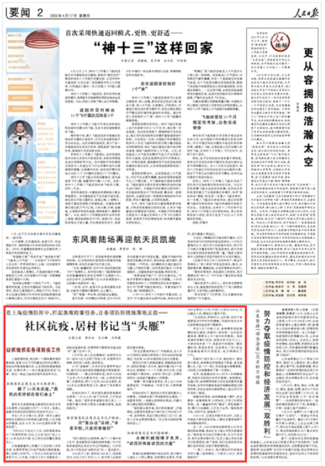 《人民日?qǐng)?bào)》2022年4月17日2版 版面截圖