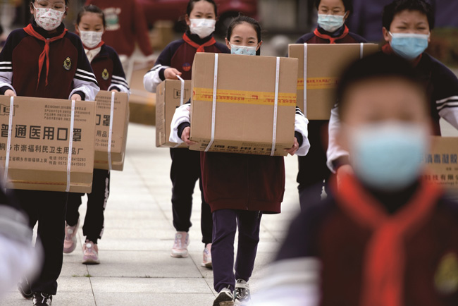 近日,嘉興秀洲一學(xué)校的愛心家長,為學(xué)校捐贈(zèng)了5萬只口罩、七八百瓶洗手液和50多把額溫槍,助力學(xué)校疫情防控工作,筑牢安全防線。(馮玉坤)