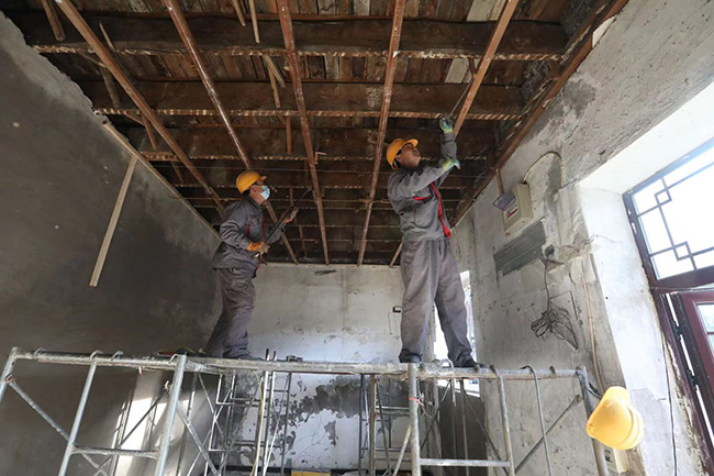 按照計劃,樓頂將由原來的木質(zhì)大屋脊整體更換為樹脂瓦阻燃屋面。而在第一階段改造中,樓體阻燃,為居民量身訂制燃?xì)夤瘢鋫?4小時巡護(hù)“管家”,每天進(jìn)行巡查記錄并拍攝現(xiàn)場照片均已完成。一層的臨街房屋內(nèi)的夾層已經(jīng)拆除完畢,木制窗已經(jīng)更換為塑鋼窗,原來的薄墻面上加裝硅酸鈣板,地面鋪設(shè)了耐火地板磚,屋頂?shù)跹b了石膏板。二層樓內(nèi)木樓板已鋪設(shè)耐火瓷磚,樓內(nèi)電線電纜進(jìn)行了梳理排查,完成了整體更換,鋪設(shè)了不銹鋼槽式電纜橋架,確保樓內(nèi)居民用電安全穩(wěn)定。