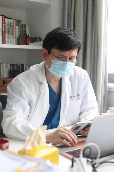 緊接著,張文宏和100余位專家視頻連線,會(huì)診各定點(diǎn)醫(yī)院的重癥患者。他在線聽到了好消息,“有一例危重型患者,兩次核酸陰性;還有3例基礎(chǔ)病重癥患者由原先的基礎(chǔ)病重癥轉(zhuǎn)為輕癥”……連線結(jié)束,他快速接受了大江東工作室的專訪,后面,他還有一場(chǎng)專家討論會(huì)要參加。