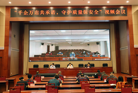 “千企萬店共承諾 守護質量保安全”視頻會議現(xiàn)場。 河北省市場監(jiān)管局供圖