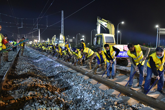 “22日20時40分至23日5時40分、24日22時至25日7時正式進行京唐鐵路與京哈鐵路上下行42號道岔整體橫移插入施工,并取得圓滿成功?!敝袊F路北京局集團有限公司所屬唐山工務(wù)段副段長王建介紹說,自3月15日以來,為嚴(yán)格落實沿線疫情防控政策,該段組織相關(guān)科室、車間20余名干部職工吃住在現(xiàn)場,對兩組道岔預(yù)鋪平臺搭設(shè)、預(yù)鋪組織、線下焊軌、探傷、標(biāo)志標(biāo)識油刷、放散、精調(diào)等進行全程技術(shù)指導(dǎo),全力確保岔位和平縱斷面上線零誤差。