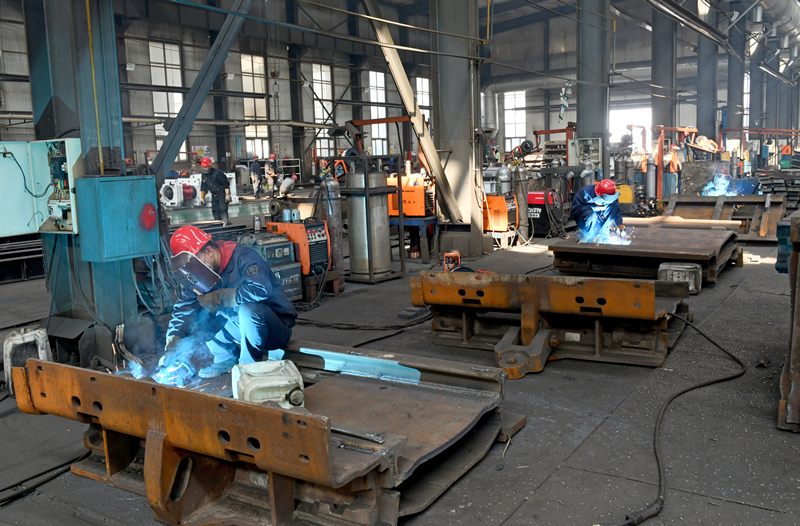 4月16日,大同市同華礦機(jī)制造有限責(zé)任公司生產(chǎn)車間一景。大同市對(duì)各生產(chǎn)企業(yè)工作人員進(jìn)行閉環(huán)管理,做到疫情期間不停工。李冬賓 攝