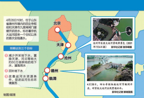 為了保護(hù)和利用好大運(yùn)河,日前水利部啟動(dòng)了京津冀魯京杭大運(yùn)河2022年全線(xiàn)貫通補(bǔ)水行動(dòng),通過(guò)優(yōu)化調(diào)度南水北調(diào)水、黃河水、本地水、再生水及雨洪水等多水源,向京杭大運(yùn)河黃河以北707公里河段進(jìn)行補(bǔ)水,為實(shí)現(xiàn)“十四五”大運(yùn)河主要河段基本有水、進(jìn)一步推動(dòng)實(shí)現(xiàn)京杭大運(yùn)河全年有水積累經(jīng)驗(yàn)。