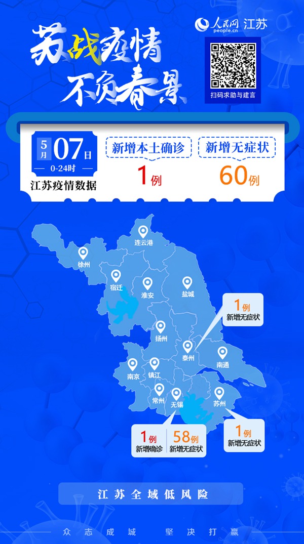 5月7日江蘇新增1例本土確診病例 60例本土無癥狀感染者