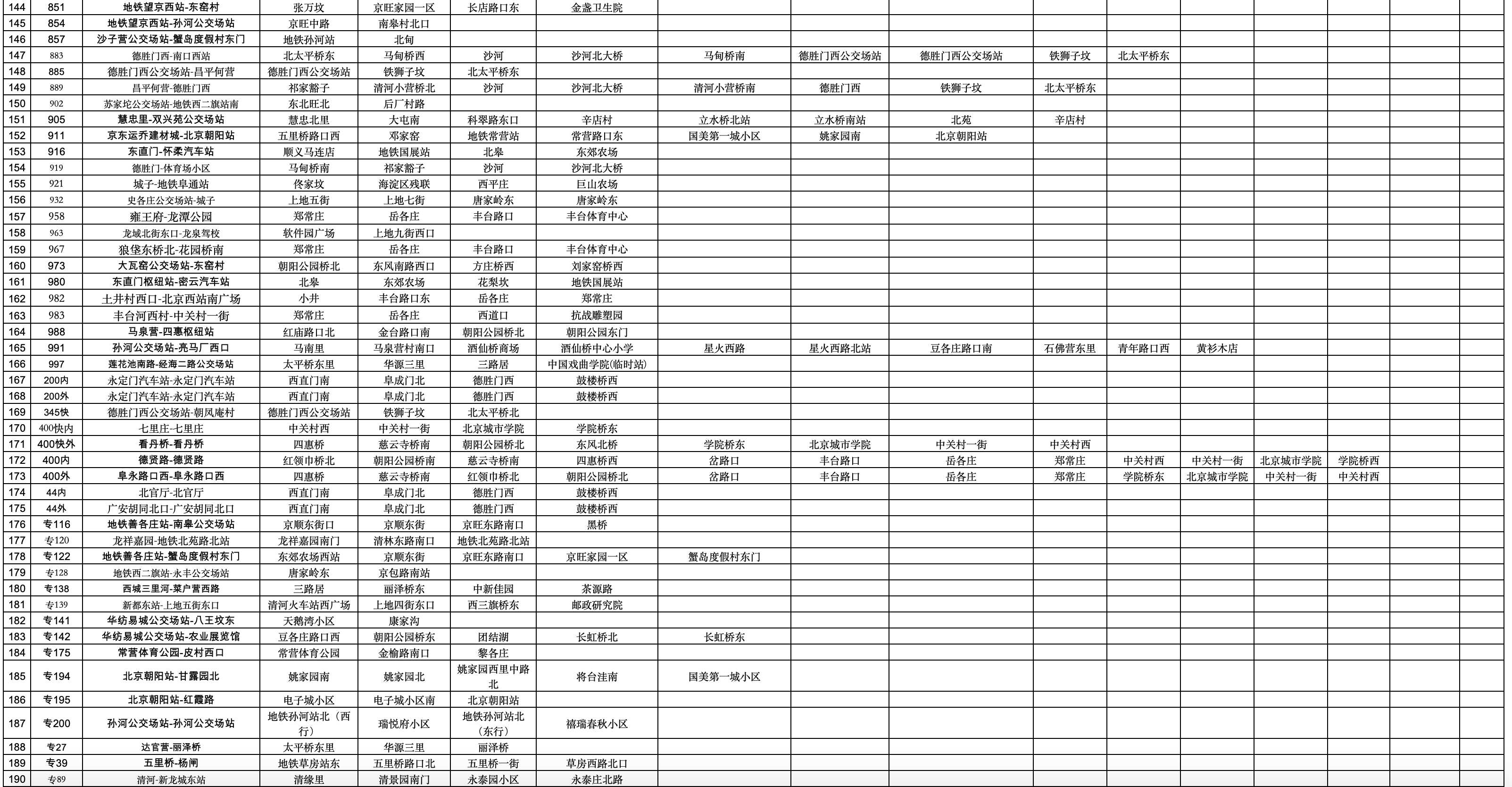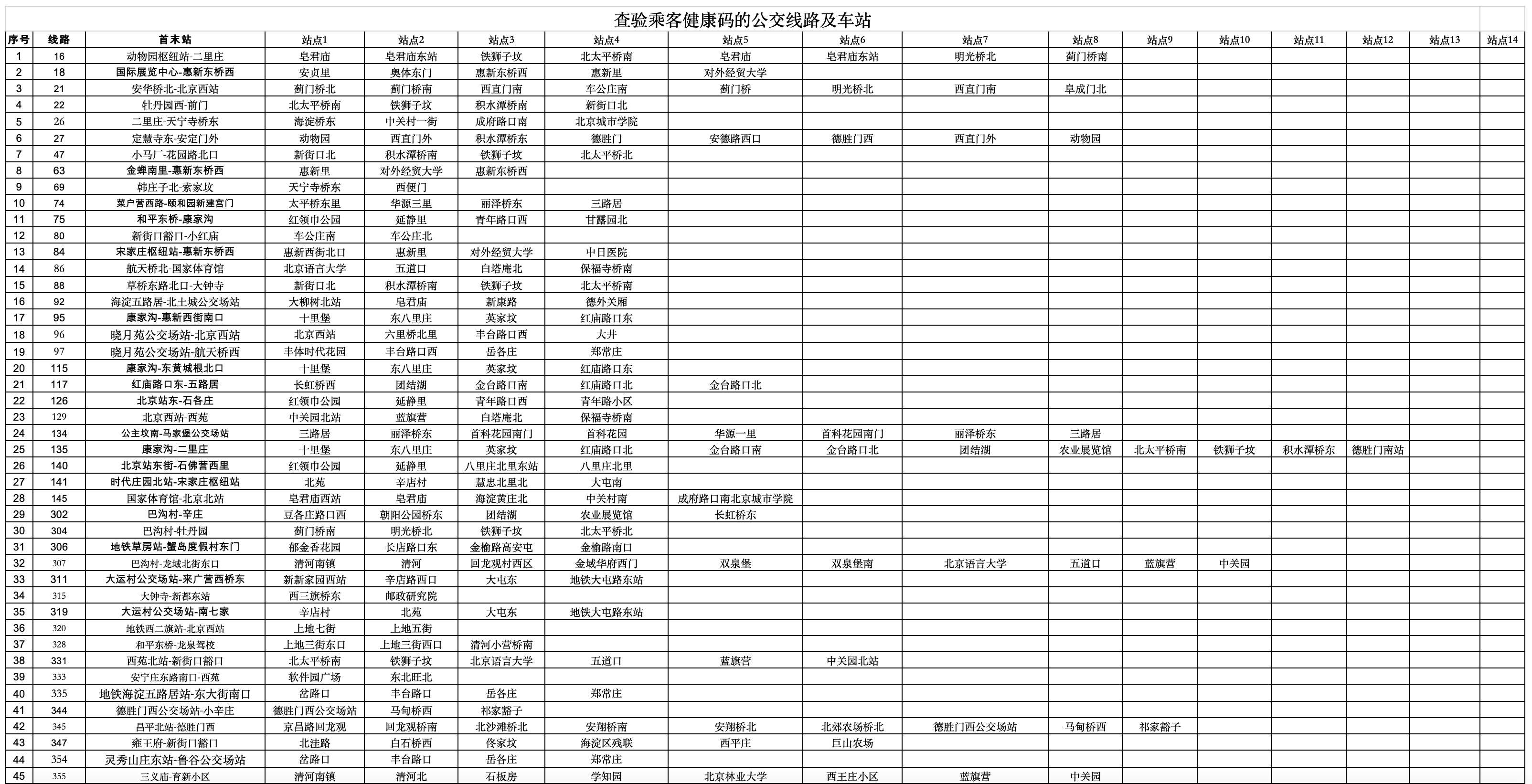 人民網(wǎng)北京5月16日電 (池夢蕊)根據(jù)北京市疫情防控需要,為做好精細(xì)精準(zhǔn)防控,自2022年5月17日首班車起,北京市疫情防控封控區(qū)、管控區(qū)周邊的190條地面公交線路重點(diǎn)車站和54座地鐵車站(具體見附表),查驗(yàn)乘客健康碼上車。后續(xù)將結(jié)合北京市疫情防控措施進(jìn)行動態(tài)更新。