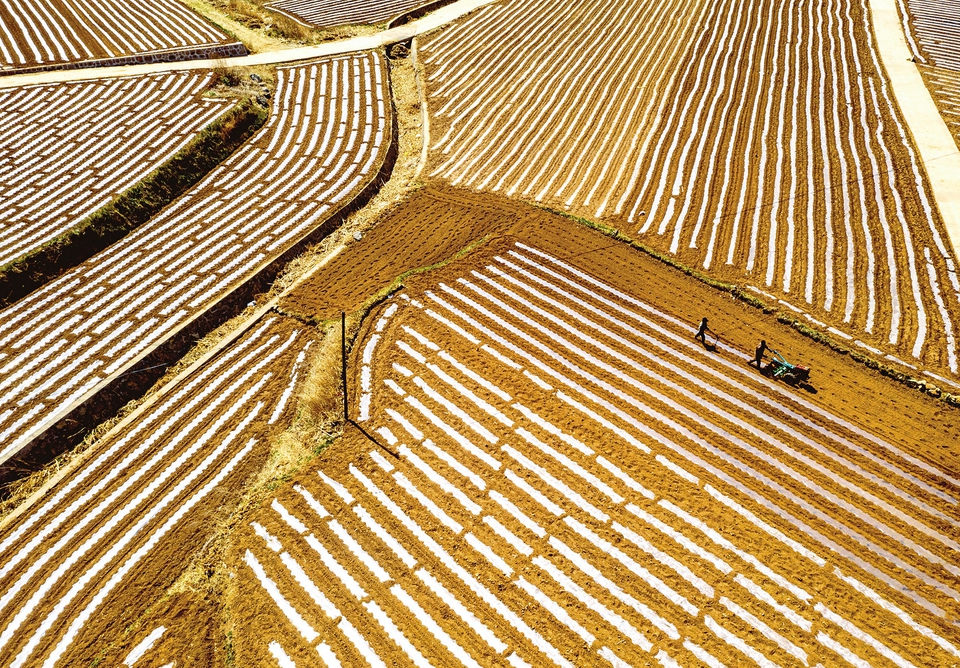 5月15日,晉中市左權(quán)縣下莊村鋪滿地膜的農(nóng)田在陽光照射下,構(gòu)成一幅錦繡太行的詩畫田園景致。近年來,左權(quán)縣積極落實(shí)糧食直補(bǔ),地膜、農(nóng)機(jī)財(cái)政補(bǔ)貼的政策,極大地調(diào)動(dòng)了農(nóng)民種糧的積極性,糧食連續(xù)獲得豐收。同時(shí),通過農(nóng)旅融合,詩畫般的田園風(fēng)光吸引了不少游客,助推農(nóng)民增收。(邢蘭富)