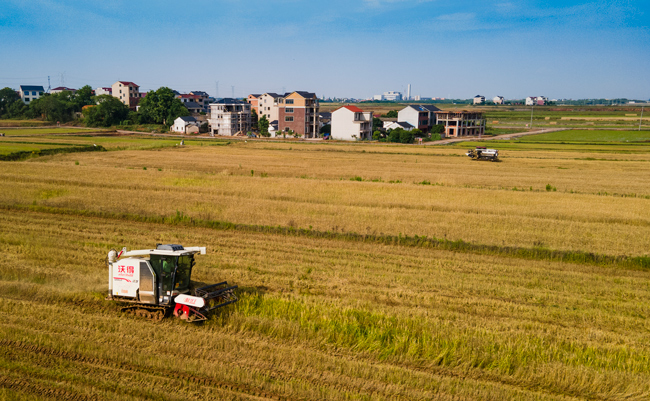 5月16日下午,金華市金東區(qū)塘雅鎮(zhèn)萬畝良田區(qū)塊里機(jī)聲隆隆,4臺(tái)聯(lián)合收割機(jī)在滾滾麥浪中穿梭,收割成熟的小麥。據(jù)介紹,收獲的小麥品種為“揚(yáng)麥23”和“寧麥133”,面積1200多畝,這幾天天氣晴好,可在3天至4天時(shí)間內(nèi)可收割完畢。(時(shí)寬兵)