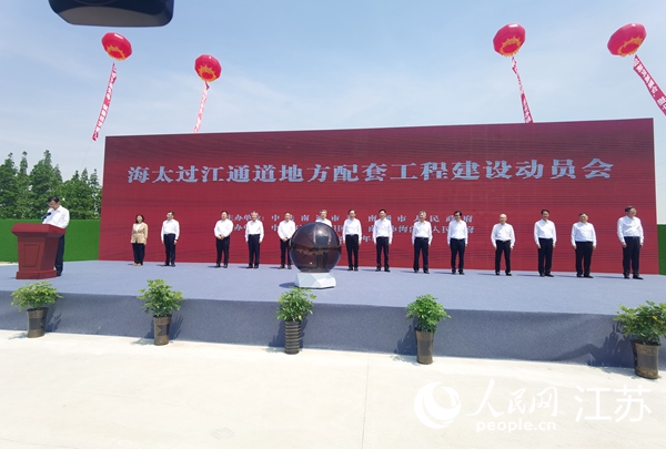 人民網(wǎng)南通5月18日電 (記者王繼亮)18日上午,海太過江通道地方配套工程建設(shè)動員大會在南通海門區(qū)召開,標(biāo)志著此項目正式轉(zhuǎn)入施工籌備階段。南通市委書記、市人大常委會主任王暉宣布項目開工,江蘇省交通運輸廳廳長吳永宏,蘇州市副市長施嘉泓,南通市委副書記、市長吳新明等到會并致辭。
