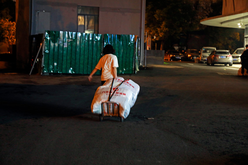 一個(gè)打包袋能裝200多件衣服,重約60公斤。孫楊洋攝
