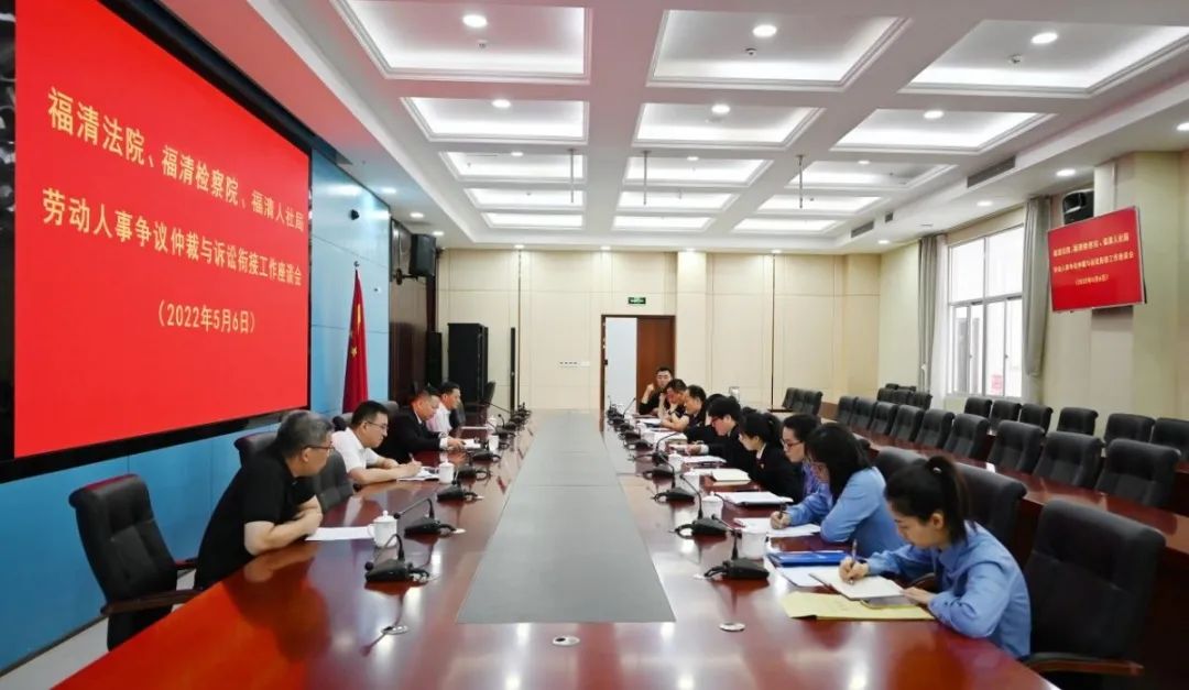 為更好推進(jìn)裁審銜接,經(jīng)溝通,2022年5月6日,福清市法院、福清市檢察院、福清市人社局共同召開勞動(dòng)人事爭議仲裁與訴訟銜接工作座談會。