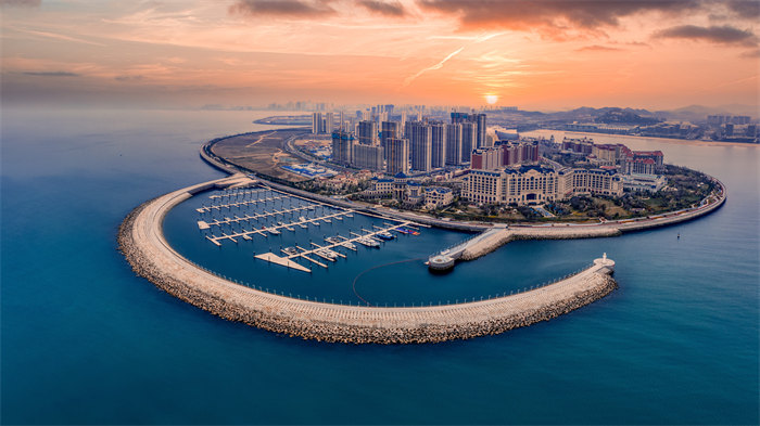 碧波微漾、白帆數(shù)點。青島東方影都游艇碼頭項目是克利伯環(huán)球帆船賽青島站承辦場地、國際“五金錨”認證游艇碼頭。碼頭位于星光島南側(cè),共有230個帆船泊位,為國內(nèi)靠泊船型最大,中高端游艇泊位占比最高的世界級旅游基礎(chǔ)設(shè)施項目。其致力于打造中國最高端的度假型游艇會,已成為青島海上新地標。