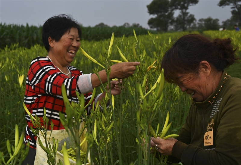 61歲的唐萬(wàn)是唐家堡村第一批黃花菜種植戶。2020年,他將家中的30畝土地流轉(zhuǎn)給當(dāng)?shù)睾献魃绶N植黃花?!耙郧白约悍N地的時(shí)候,一年下來(lái)收入有時(shí)還不到2000元。沒(méi)想到,30畝黃花地改變了我們一家的生活,現(xiàn)在每年都能有3萬(wàn)多元的收入,好的時(shí)候甚至更多。”說(shuō)起黃花帶來(lái)的好生活,唐萬(wàn)臉上流露出喜悅。