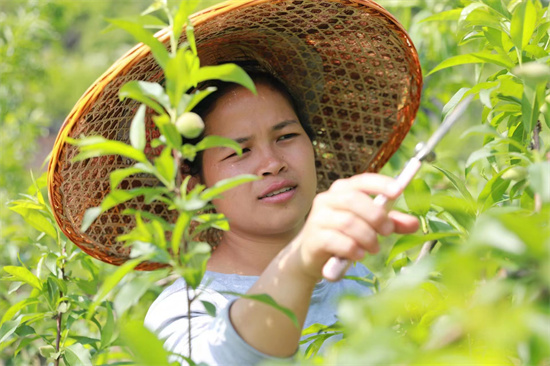 “今年是一個(gè)豐收年,我們正在給果園松土和縮果。等下個(gè)月底成熟了,歡迎大家來吃甜蜜蜜的黃桃?!睎|安縣大廟口樂福村,成片的黃桃進(jìn)入掛果期,唐云云站在“云端”,提前向網(wǎng)友發(fā)出豐收的邀請(qǐng)。