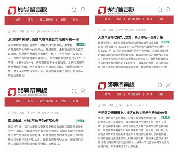 近年來(lái),隨著深圳全力推進(jìn)城中村管道燃?xì)飧脑欤岸繓|”亂收燃?xì)赓M(fèi)的現(xiàn)象層出不窮。多位深圳網(wǎng)友曾在人民網(wǎng)“領(lǐng)導(dǎo)留言板”留言,反映房東收取的燃?xì)赓M(fèi)遠(yuǎn)高于《深圳市燃?xì)鈨r(jià)格制度標(biāo)準(zhǔn)》?!罢茝V天然氣入戶(hù),是個(gè)大好事,我們都非常支持,可是卻給了少數(shù)二手房東加價(jià)收費(fèi)的名目?!币晃痪W(wǎng)友說(shuō)。