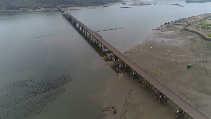 經(jīng)查證,該鋼制棧橋長852米,工程造價約2300萬元,為透水性構(gòu)筑物,現(xiàn)已年久失修,成為危橋,時有群眾翻越隔離網(wǎng)觀光或釣魚,存在巨大安全隱患,嚴(yán)重危害人民生命財產(chǎn)安全。