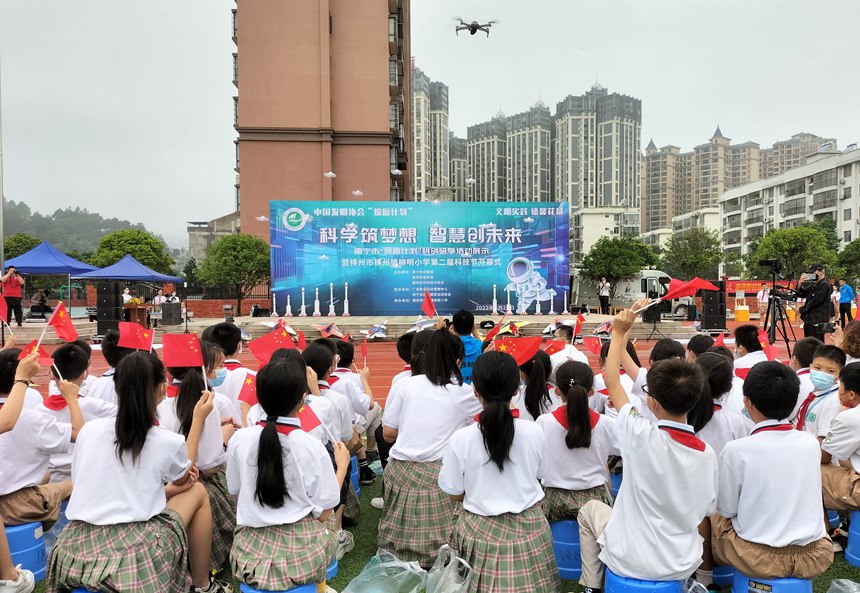 當(dāng)天,開幕式舉行了升國旗儀式,進(jìn)行了“柳芽夢二號”、傘降火箭升空及放飛紙飛機(jī)活動。南寧市科技館展示了科學(xué)實(shí)驗(yàn)秀、機(jī)器人舞蹈等節(jié)目;廣西航空運(yùn)動管理中心進(jìn)行了無人機(jī)集群編舞、遙控固定翼3D花式特技等航模飛行表演;柳明小學(xué)師生帶來了科普劇《綠色動員令》《科學(xué)用眼》,環(huán)保服裝走秀《美麗的四季》。開幕式結(jié)束后,蒙科祺還參觀指導(dǎo)了科技節(jié)校內(nèi)活動及學(xué)生作品。