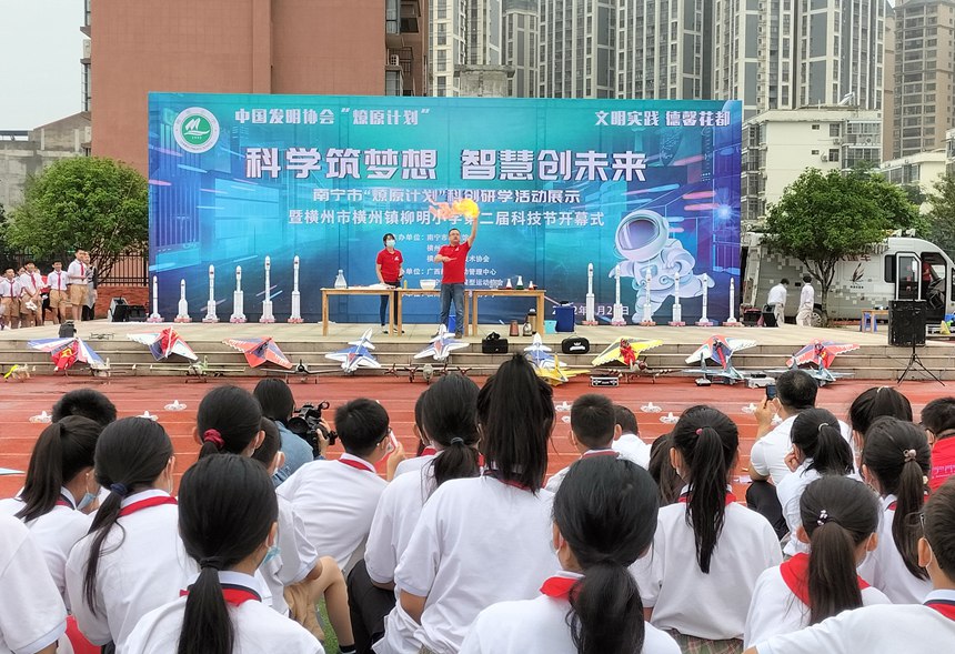 5月24日,由南寧市科技館、橫州市教育局、橫州市科學(xué)技術(shù)協(xié)會主辦的“科學(xué)筑夢想 智慧創(chuàng)未來”南寧市“燎原計(jì)劃”科創(chuàng)研學(xué)活動展示暨橫州市橫州鎮(zhèn)柳明小學(xué)第二屆科技節(jié)開幕式在橫州市舉辦。南寧市科技館黨支部書記、館長,南寧市青少年科技中心主任蒙科祺出席活動并為開幕式致辭。