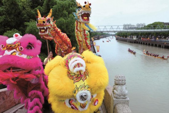 紅榴綠艾沐蘭湯,龍舟下水鬧端陽(yáng)。5月28日上午,伴隨著鏗鏘有力的鼓聲響起,一條條彩色長(zhǎng)龍?jiān)谑澜缥幕z產(chǎn)大運(yùn)河崇福段運(yùn)河畔翻騰起舞,由此拉開了2022桐鄉(xiāng)·崇福“運(yùn)河宋韻”端午民俗風(fēng)情活動(dòng)的帷幕,此次活動(dòng)也是2022嘉興端午民俗文化節(jié)的首場(chǎng)活動(dòng),標(biāo)志著2022年的端午“盛宴”正式開席。