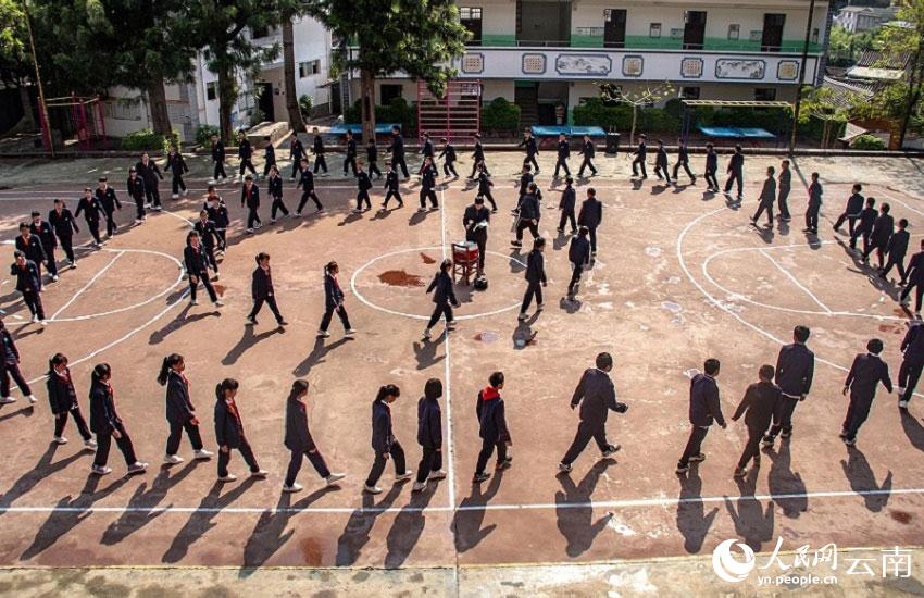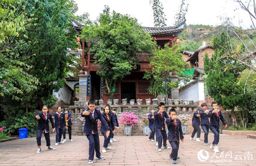 在云南省大理州云龍縣寶豐鄉(xiāng),穿過(guò)一條青石鋪就的古樸街道,走進(jìn)青瓦白墻的寶豐中心完全小學(xué)校門,便聽見一聲聲鏗鏘有力的鼓點(diǎn)。