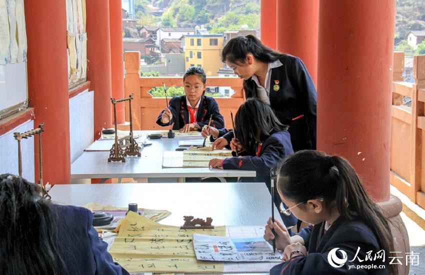書法小組的學(xué)生正認(rèn)真專注地練字。人民網(wǎng) 劉怡攝