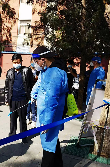 4月26日,周慶接到緊急通知,轄區(qū)公司一名員工被定為新冠肺炎密切接觸者。他迅速穿上防護(hù)裝備奔赴現(xiàn)場(chǎng),配合防疫部門落實(shí)封控措施、組織核酸檢測(cè)、維持現(xiàn)場(chǎng)秩序,工作有條不紊地開展著。短短幾天后,30日凌晨又初診一名新冠肺炎陽(yáng)性病例,小區(qū)立刻進(jìn)行封控管理。