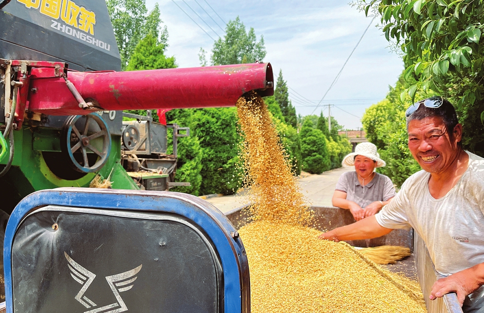 5月31日,侯馬市上馬街道,聯(lián)合收割機(jī)正在作業(yè)。近日,臨汾市300余萬(wàn)畝小麥陸續(xù)進(jìn)入收割期,各地?fù)屪マr(nóng)時(shí),確保顆粒歸倉(cāng)。李現(xiàn)俊攝
