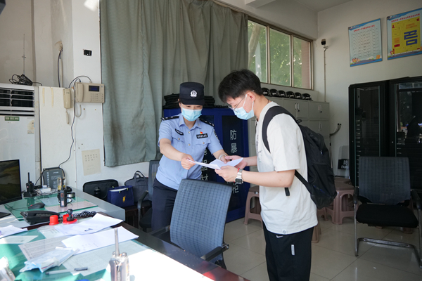 6月7日一早,在連云港灌南第二中學(xué)考點(diǎn)前,兩名考生向執(zhí)勤民警求助稱身份證遺忘在家中,駐守在考點(diǎn)的灌南縣公安局新安派出所戶籍工作人員核實(shí)身份后,現(xiàn)場為考生出具臨時(shí)身份證明,同樣用時(shí)不到5分鐘,保障考生順利開考。