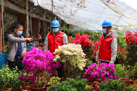 5月25日,冀北承德圍場公司四合永供電所黨員服務隊隊員到四合永鎮(zhèn)營字村海岱溝鳳利花卉園藝大棚檢查用電設備。 劉春學攝