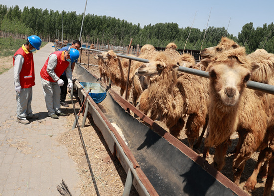 5月31日,國家電網(wǎng)冀北電力唐山“鋼鐵之魂”共產黨員服務隊隊員來到駱駝專業(yè)合作社檢查用電設備。 周宇翔攝