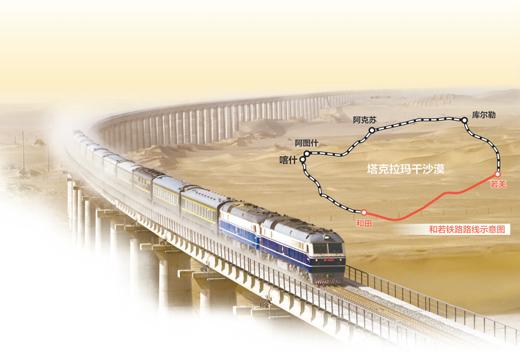 和若鐵路是一條典型的沙漠鐵路,地處世界第二大流動(dòng)性沙漠塔克拉瑪干沙漠的南緣,有534公里分布在風(fēng)沙區(qū)域,占線路總長(zhǎng)的65%。
